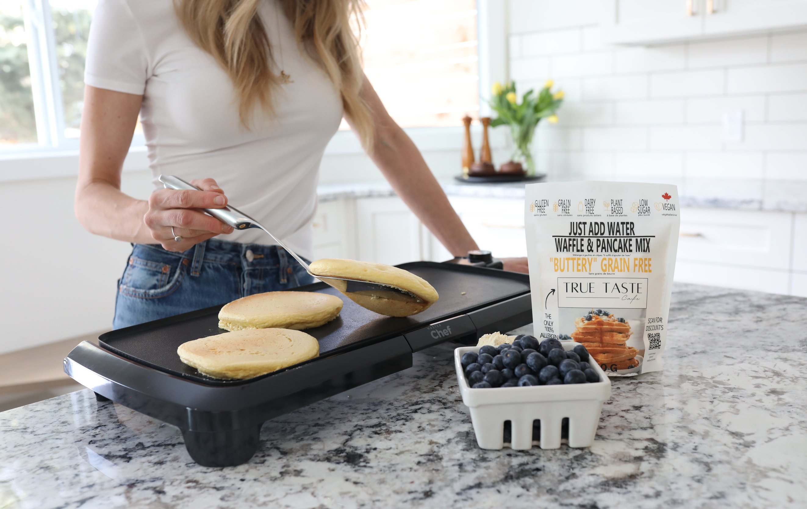 It’s simple! Just add water, mix, and pour onto your waffle iron or griddle. No extra ingredients needed — perfect for busy mornings.